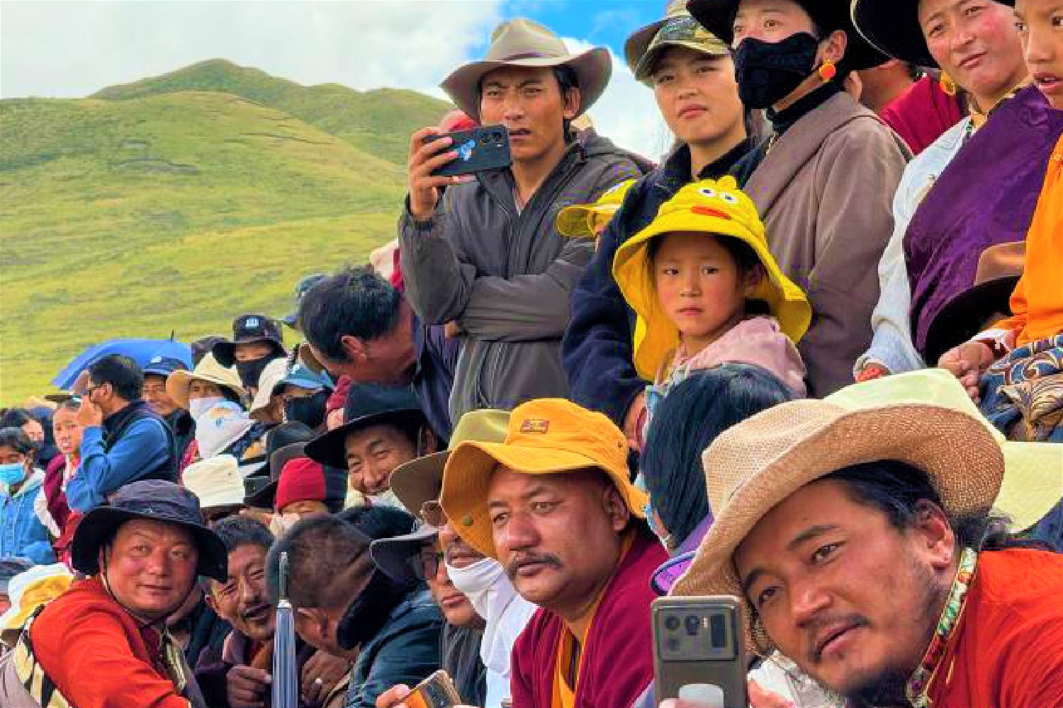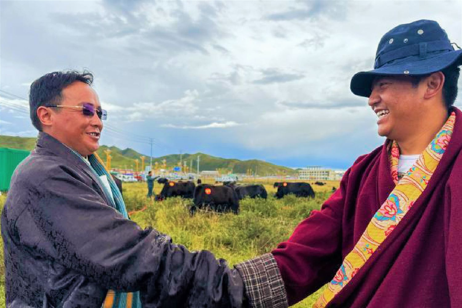 图为11日,青海三江源腹地举办“牦牛雅赛”,活动现场民众对优质种牛进行“袖口议价”。(中新社)