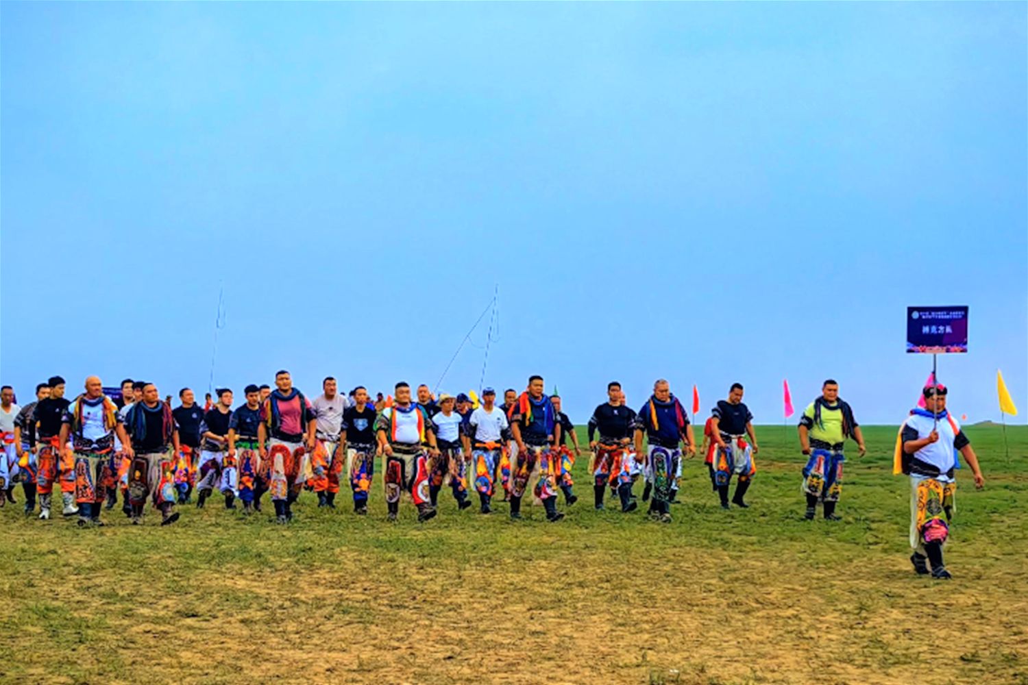 图为近日,“唱响北疆 同心筑梦”第八届“魅力乌拉特”西部民歌会暨2024年莫尼山音乐那达慕在内蒙古乌拉特前旗开幕,搏克方队入场。(内蒙古新闻网)
