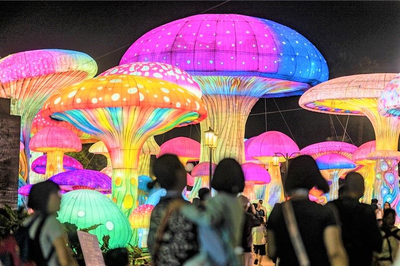 图为9月15日,“大观奇妙夜”活动在昆明市大观楼公园梦幻亮灯开展,游客从彩灯下走过。(云南网)