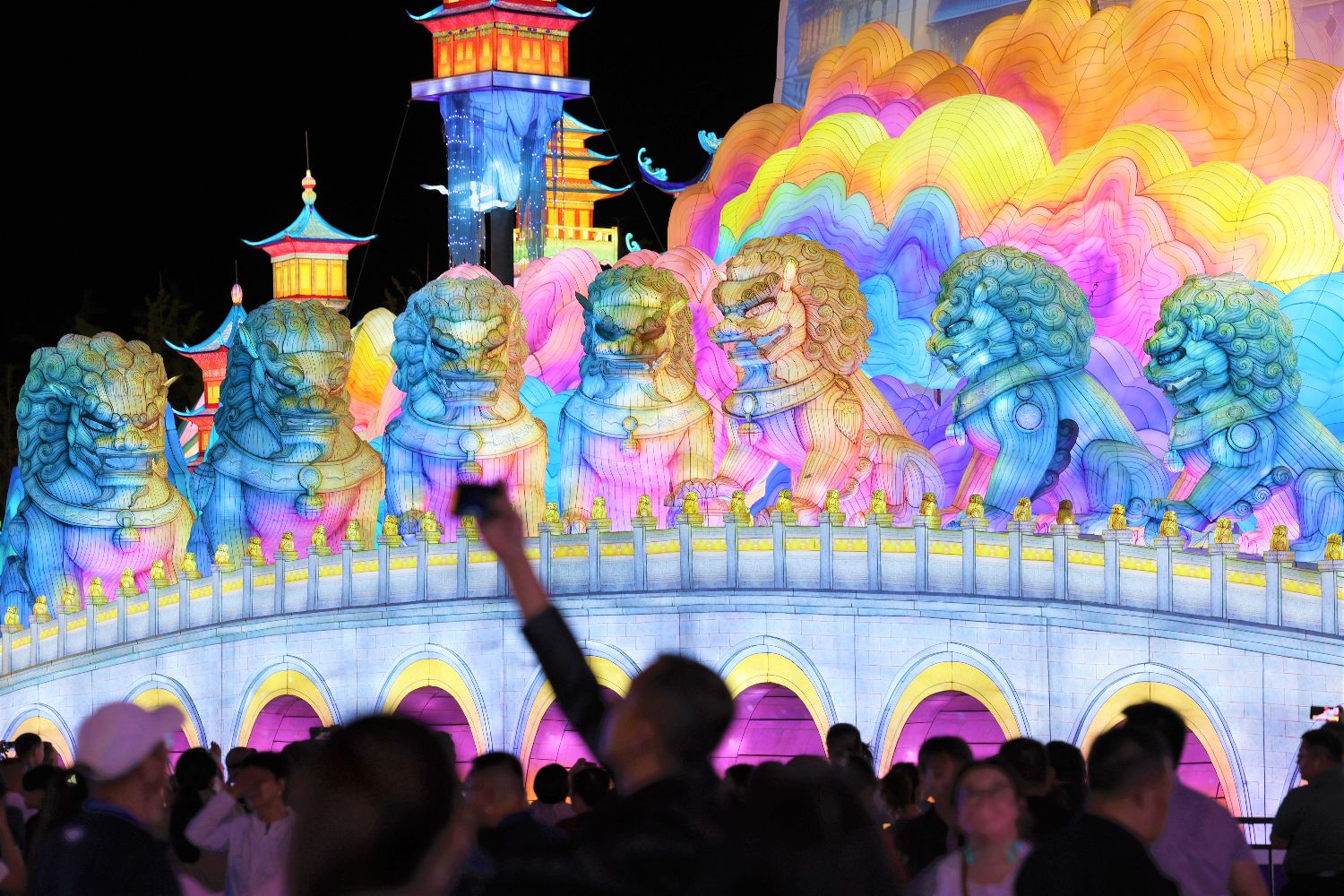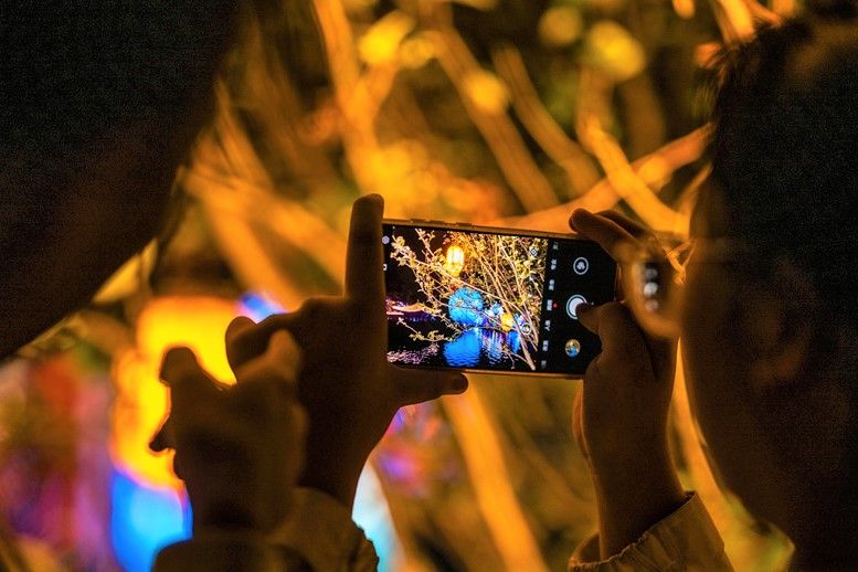 图为9月15日,“大观奇妙夜”活动在昆明市大观楼公园梦幻亮灯开展,游客在此打卡拍照。(云南网)