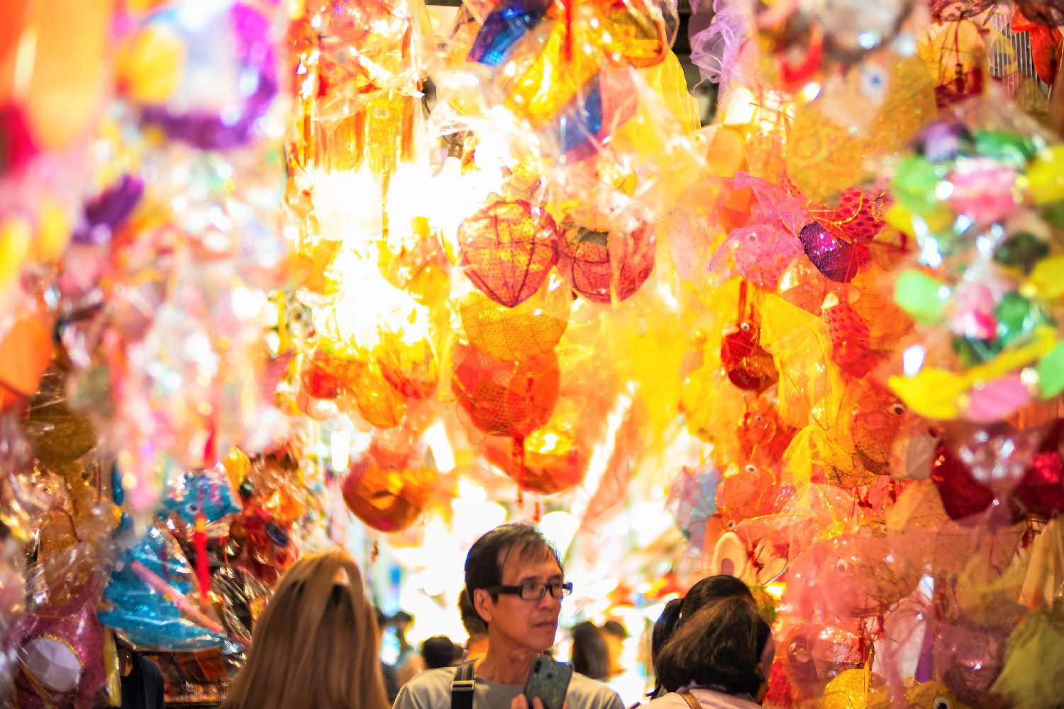 图为9月15日,香港元朗大桥街市“灯笼街”各式灯笼吸引市民游客。(中新社)