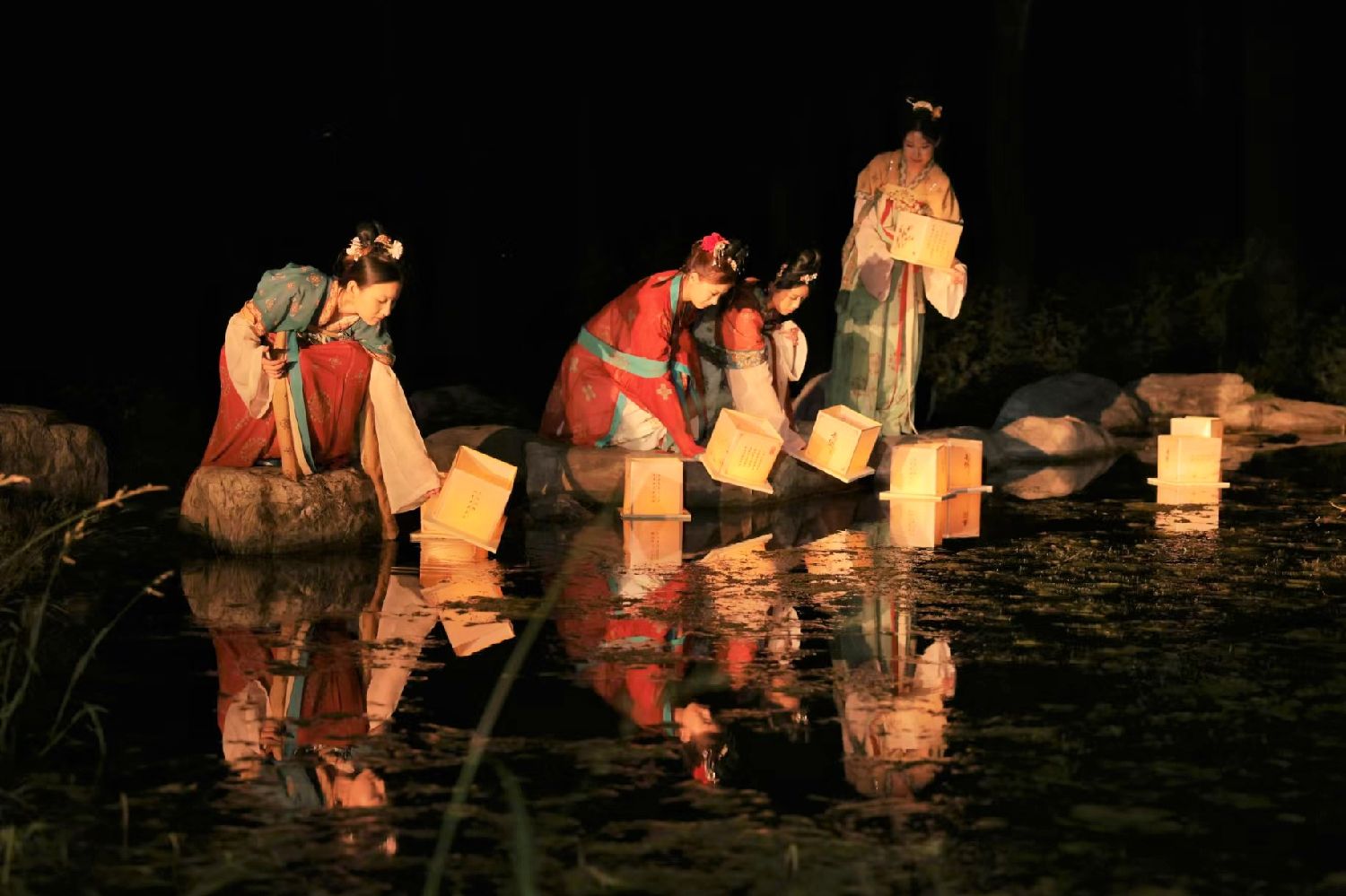 图为9月14日,以“独山承秋意·明月享团圆”为主题的延庆区2024年“独山夜月”庆中秋群众性文化活动在旧县镇盆窑村启幕。河灯祈福环节成为了本次活动的亮点之一。河灯载着祝福与思念,温暖了在场及远方人们的心。(新京报)