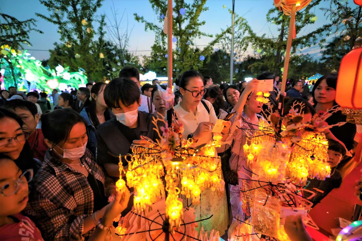 图为9月15日,丰台区2024年“卢沟晓月”中秋系列文化活动在北京园博园三号门广场正式启幕,市民购买花灯装饰挂件。(新京报)