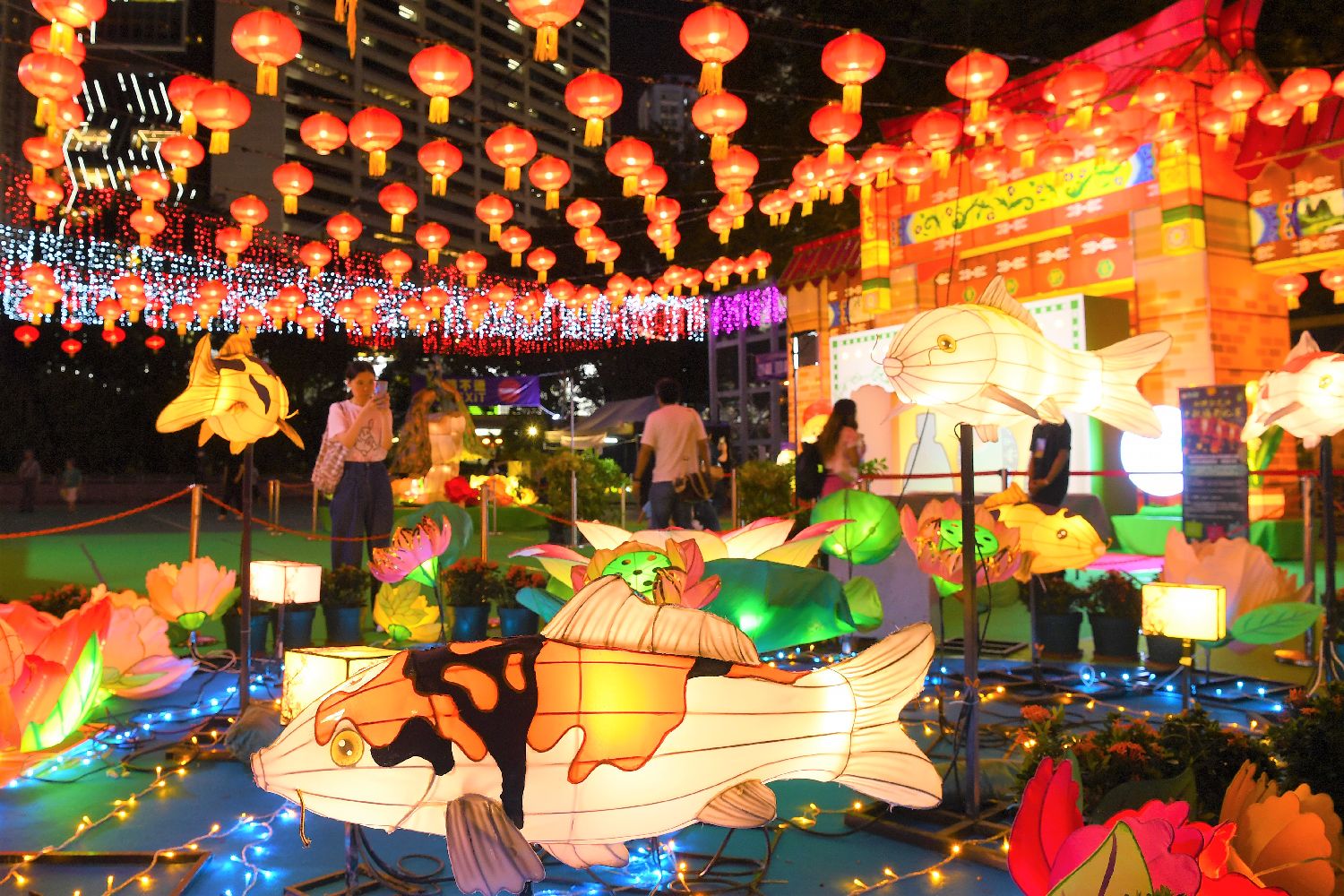 图为9月15日,大批香港市民在维多利亚公园欣赏彩灯。(香港中通社)