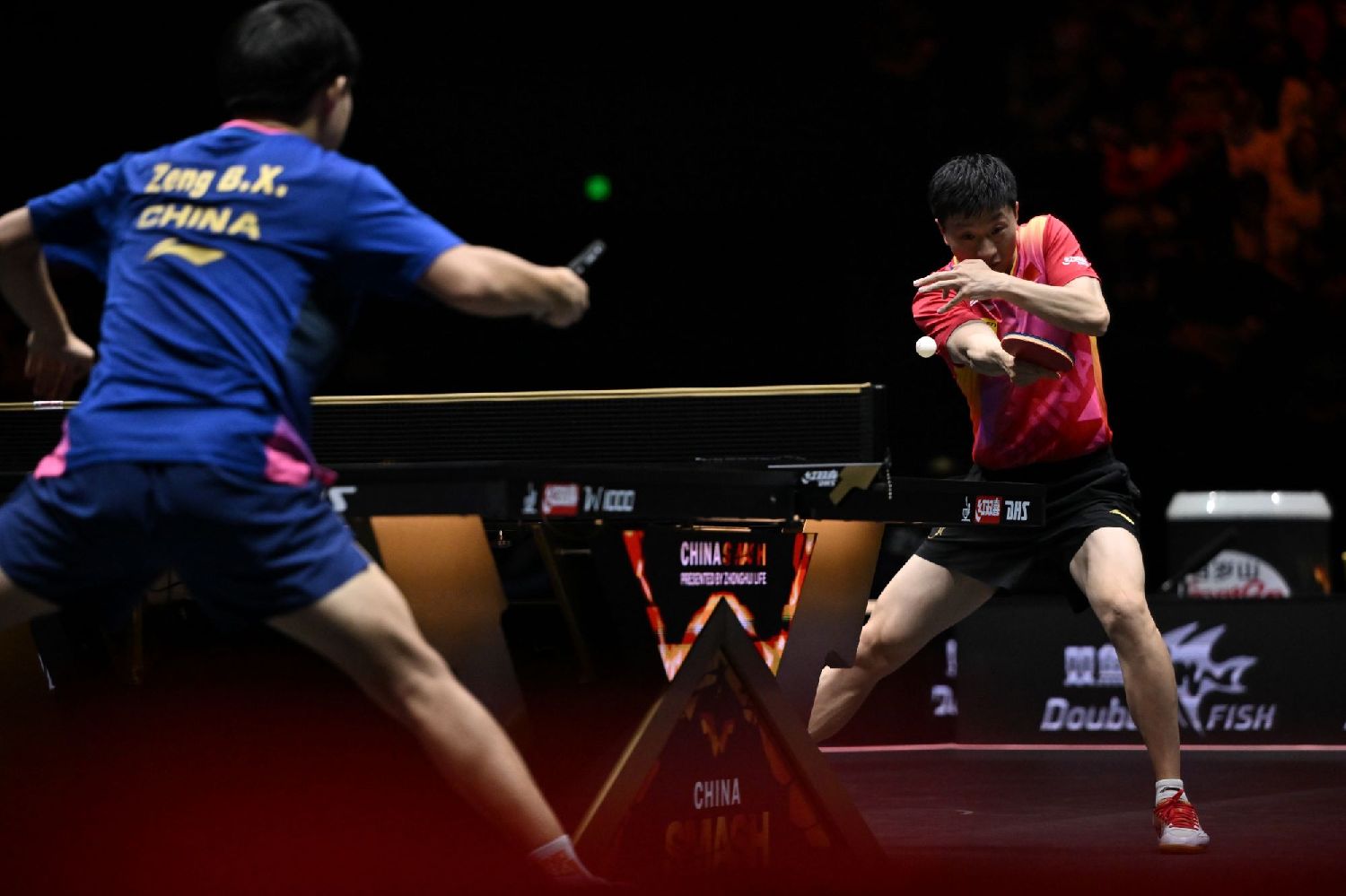 2日,WTT中国大满贯赛男单比赛中,马龙以3:1战胜曾蓓勋。(图/中新社)