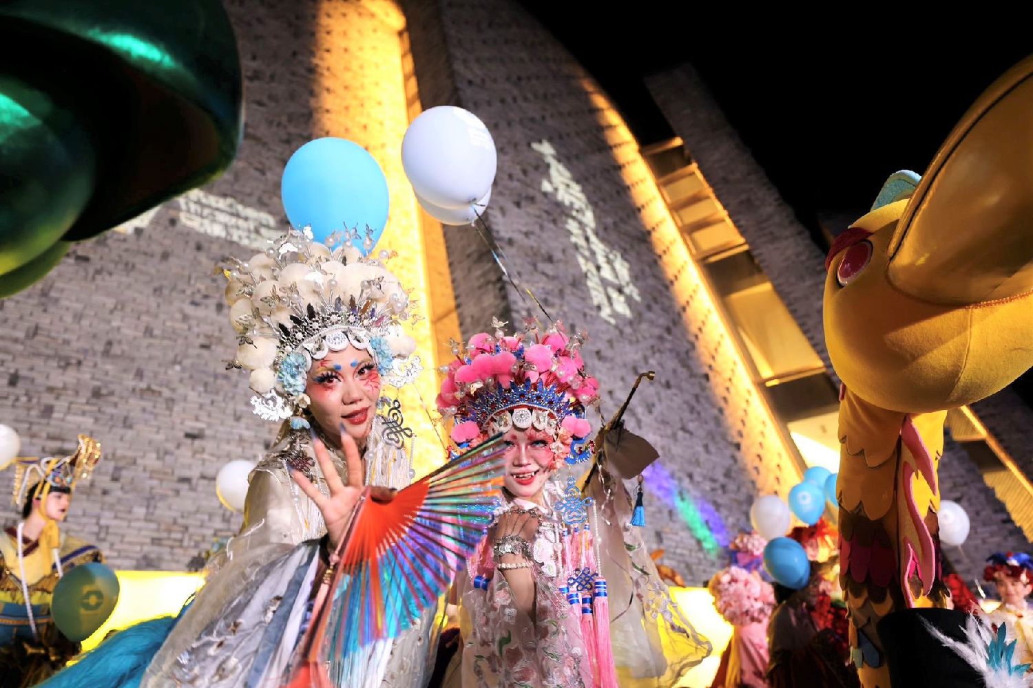 图为10月17日,表演者们头戴精美头饰,这些头饰、服装道具通常在中国戏曲或文化表演中见到。(CFP)