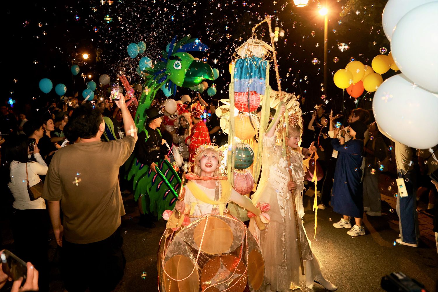 图为10月17日,长长的开幕式巡游队伍犹如巨龙,所到之处吸引无数目光。(新华网)