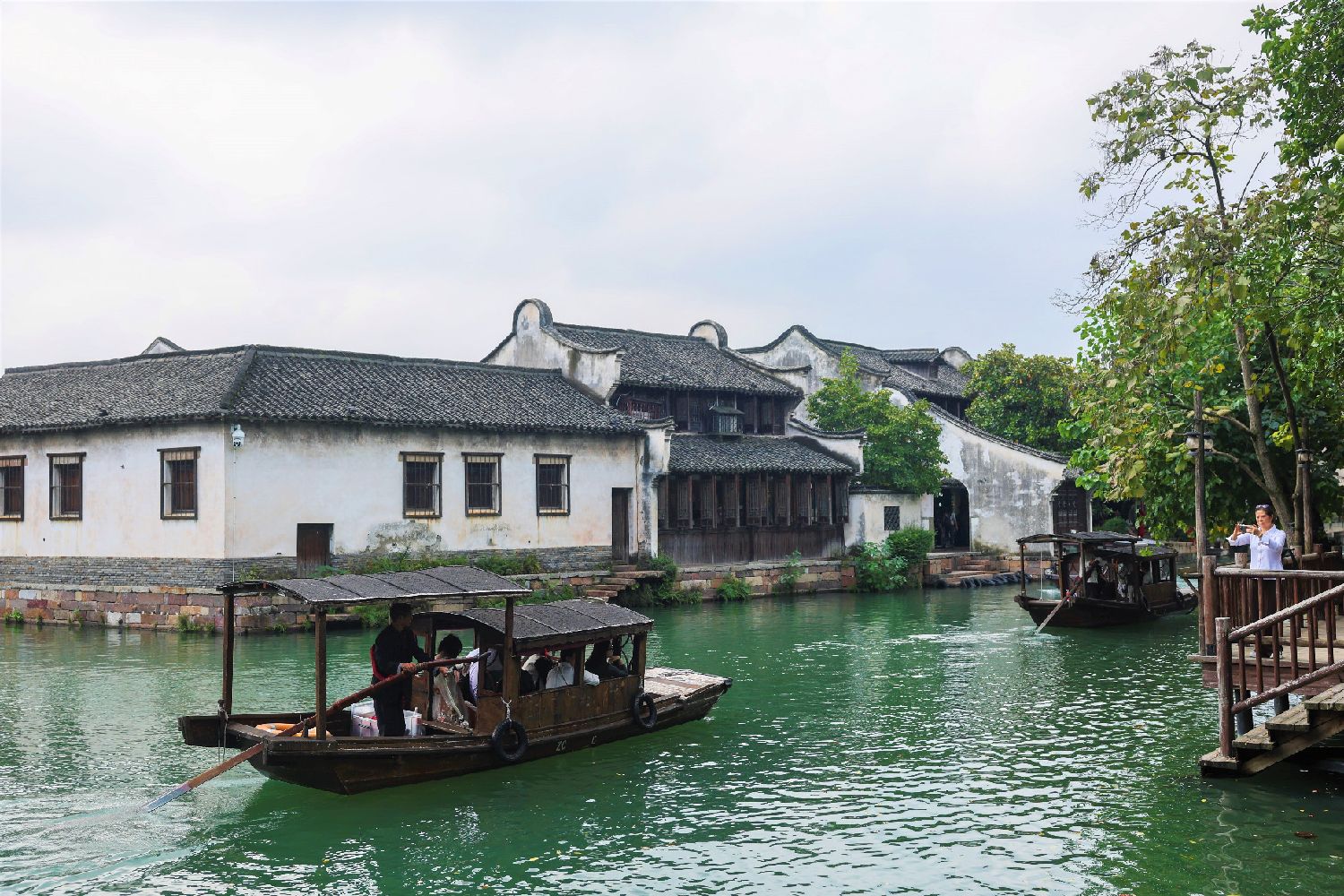 图为10月17日,游客乘船游览古镇。(新华网)