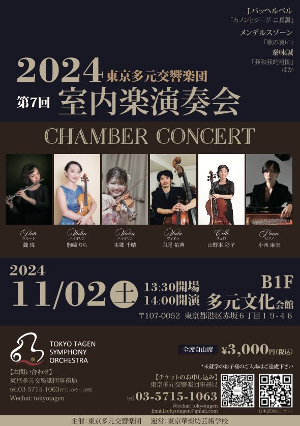 东京多元交响乐团第7回室内乐演奏会即将隆重举行