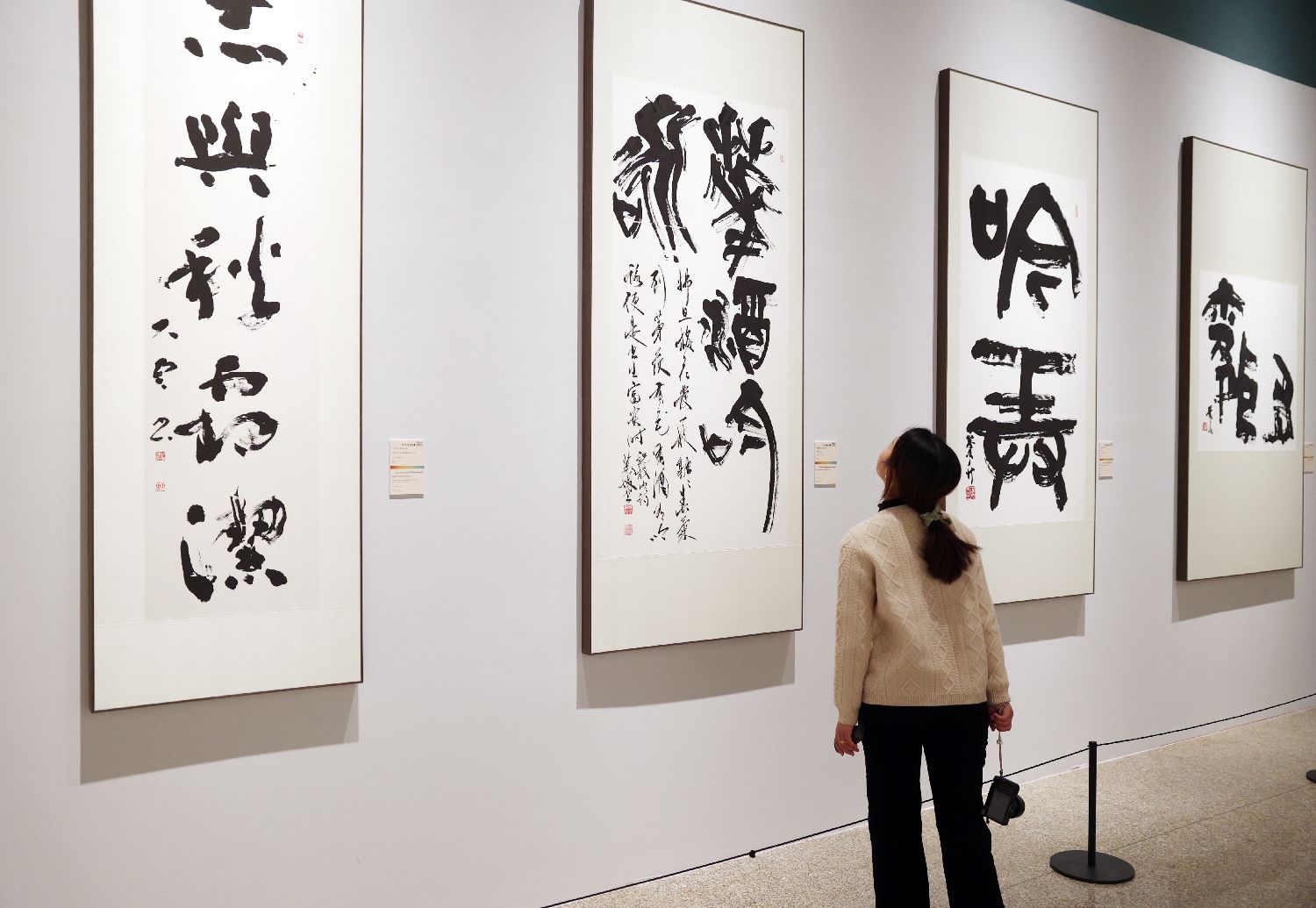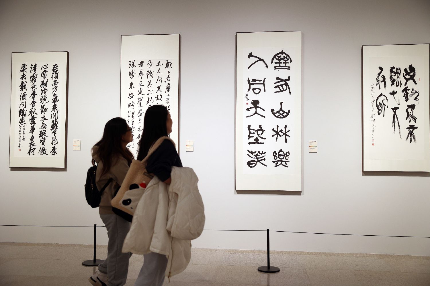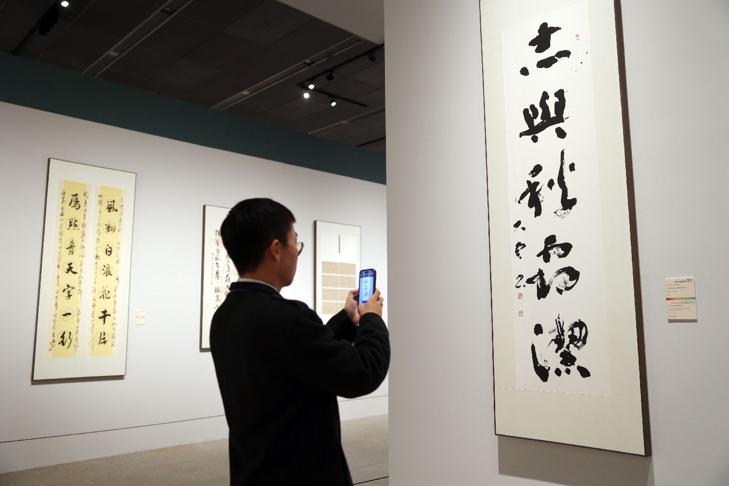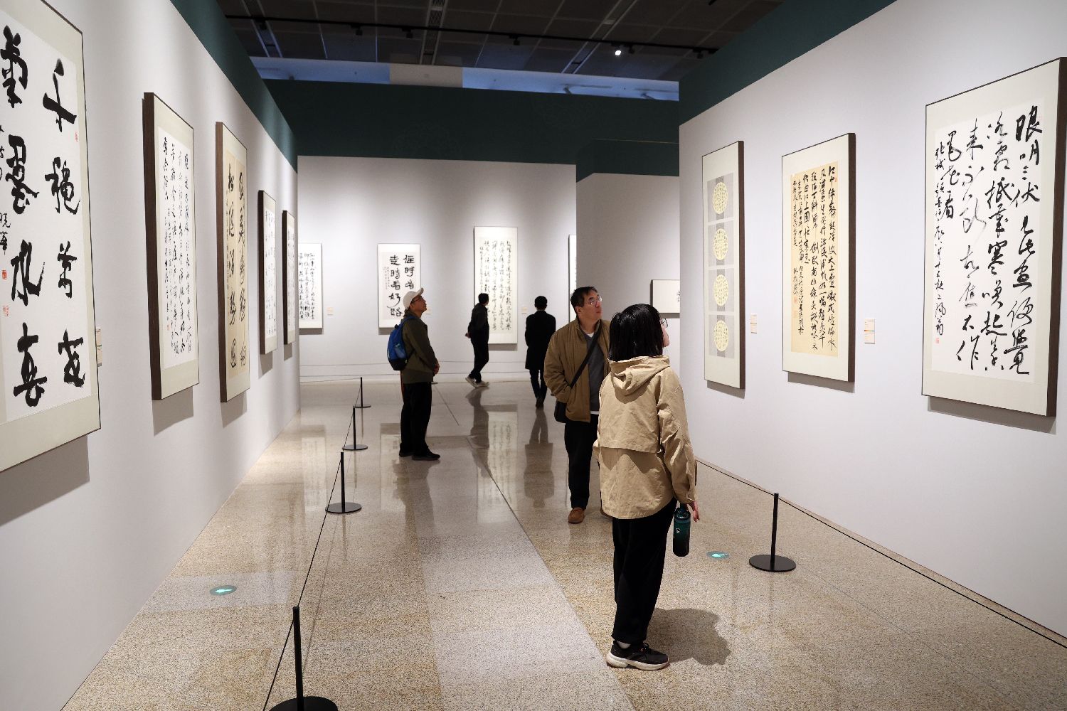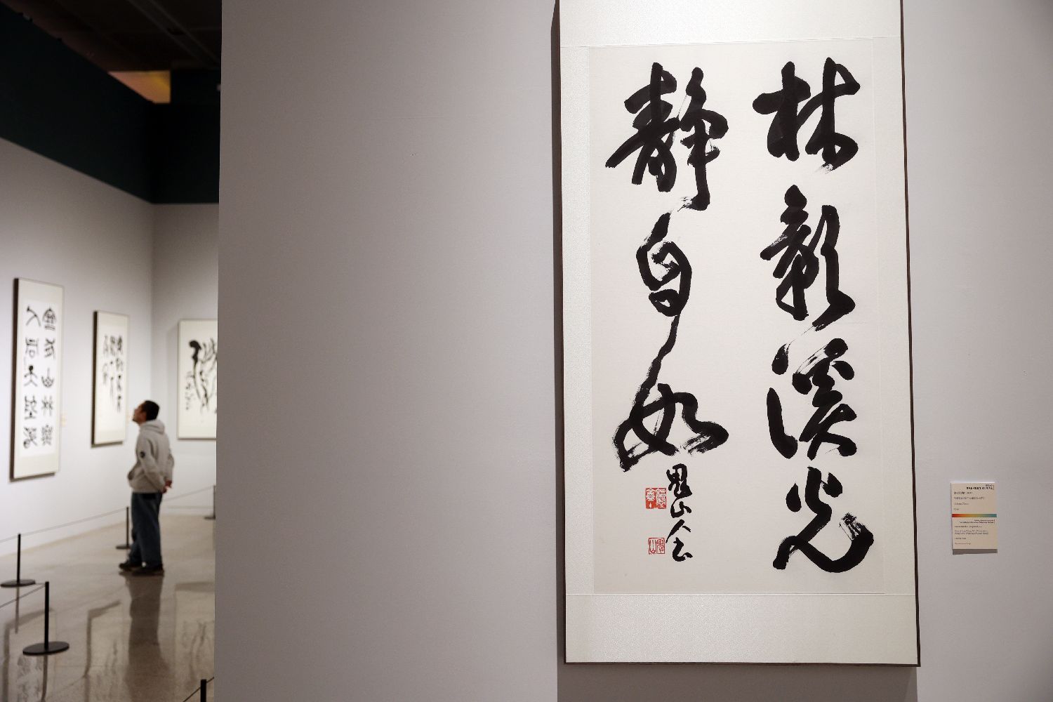 2024年11月12日,参观者走进展厅欣赏书法作品。当日,“墨鉴文心”第五届北京国际书法双年展在中国工艺美术馆对公众开放。据介绍,本次展览共有来自中国、日本、韩国、美国等27个国家和地区的119件作品展出,全方位呈现书法作为世界文化遗产的影响力以及其多元魅力,促进不同文化背景下的观众对书法艺术的理解和尊重,增进彼此之间的了解与友谊。(黎明 摄)