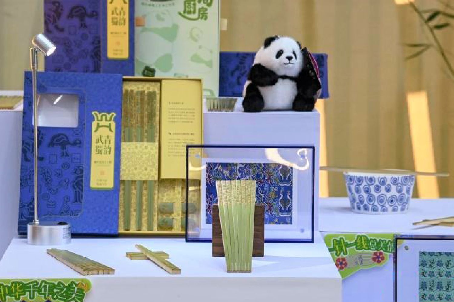 图为11月11日,四川青神,竹博会活动现场,竹子制作的手工筷等产品。(中新社)