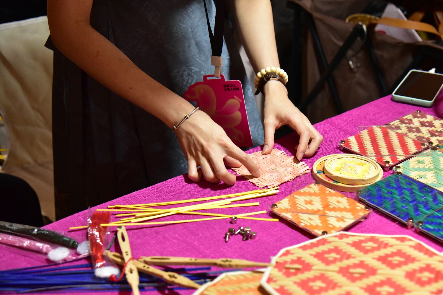 图为11月8日,广东东莞,2024粤港澳大湾区公共文化和旅游产品(东莞)采购会(简称“湾区文采会”)举行,手艺人在制作竹编工艺品。(CFP)