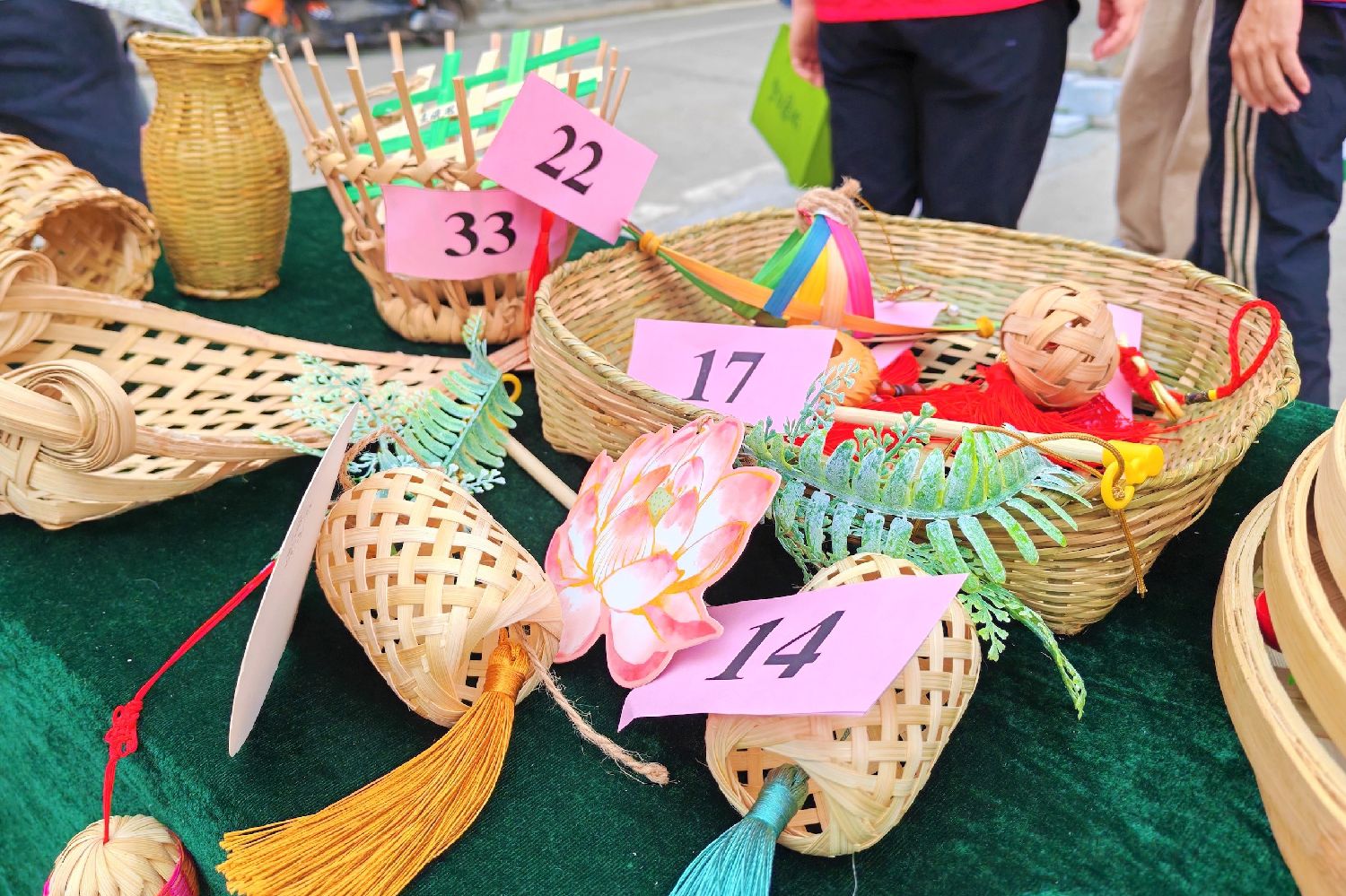 图为广东佛山,活动现场竹编作品。(人民网)