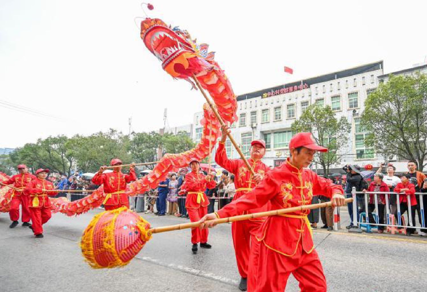图为11月13日,福建龙岩,“盂兰盆”第58届盛会龙腾盛世踩街游行上的民间舞龙队伍。(中新社)