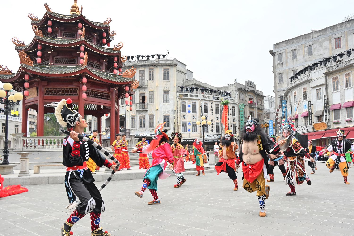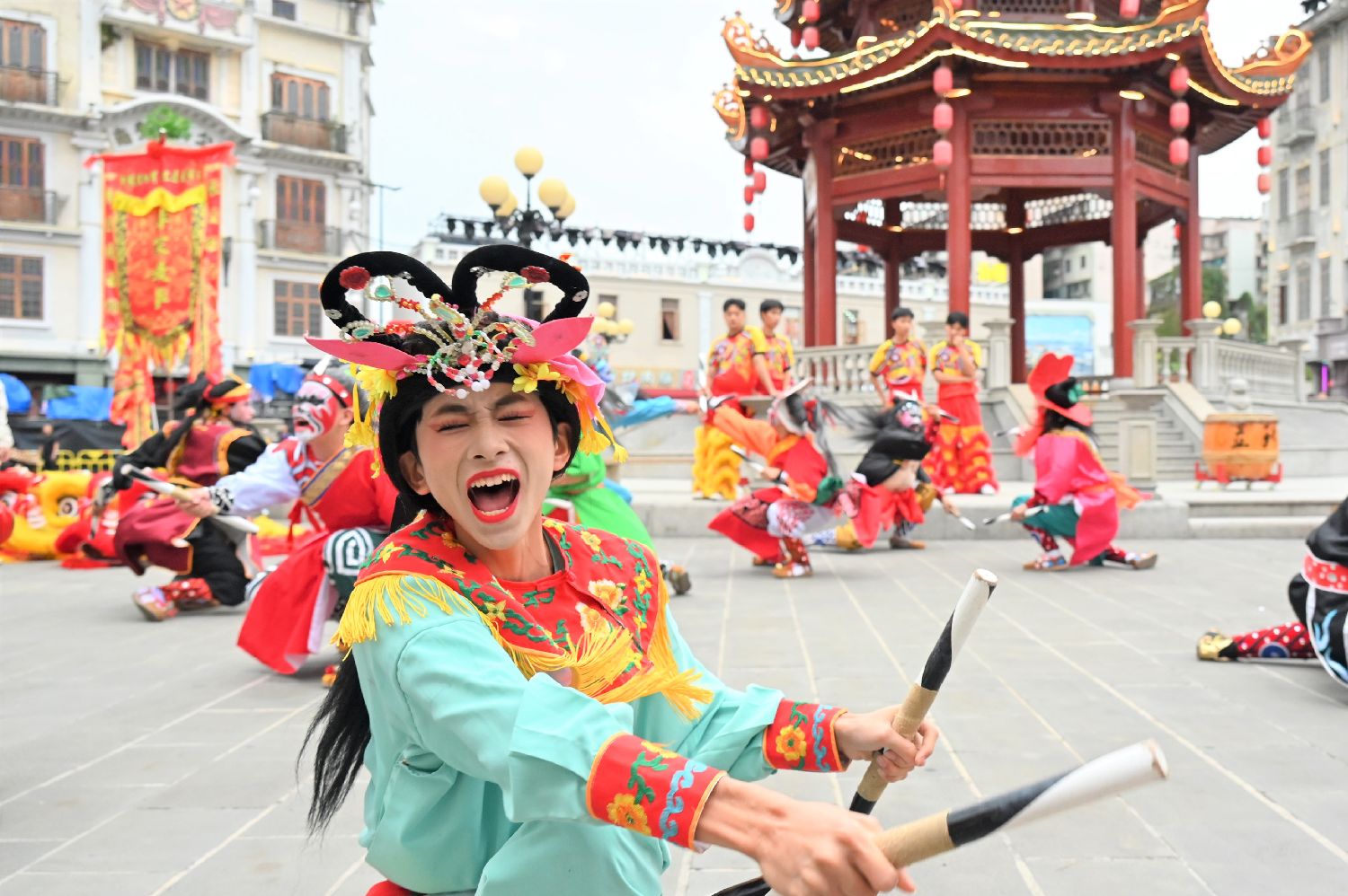 图为11月19日,英歌舞亮相广东汕头小公园历史文化街区。(中新社)