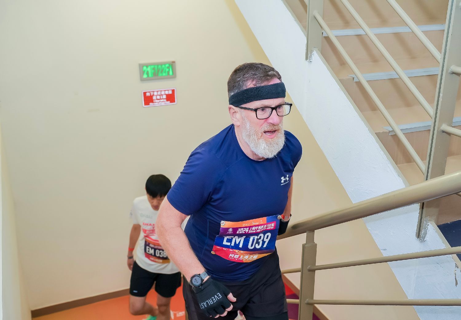 这是新加坡选手植志辉(Steven Chek)第一次参加上海中心垂直马拉松。“没爬过这么高,体验一下。”他说。