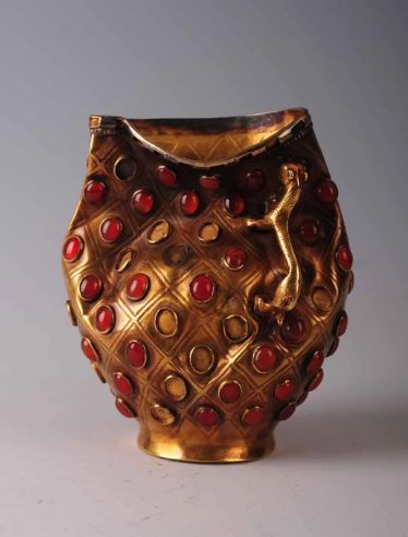 图为隋唐镶嵌红玛瑙虎柄金杯。(图/京都文化博物馆官网)