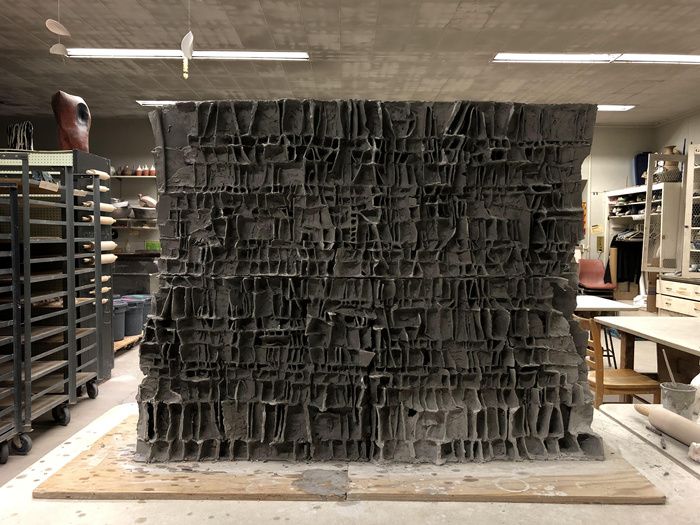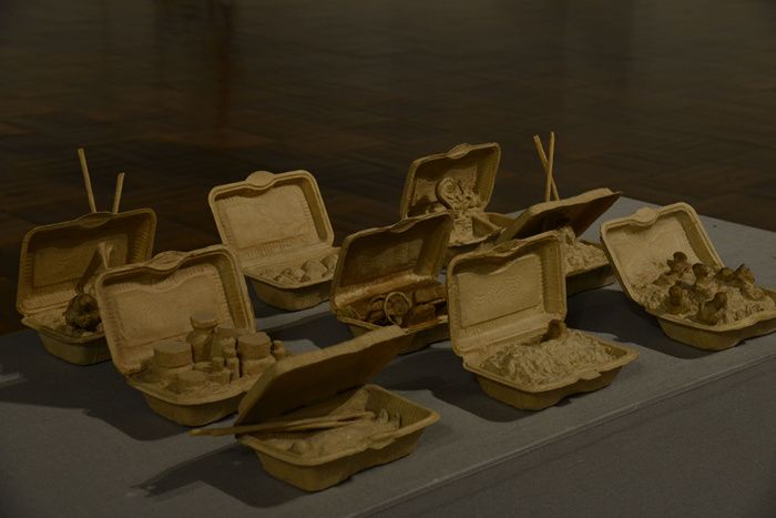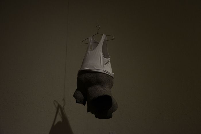 《身份异化》纸浆、建筑构件、沙土110×80×40cm