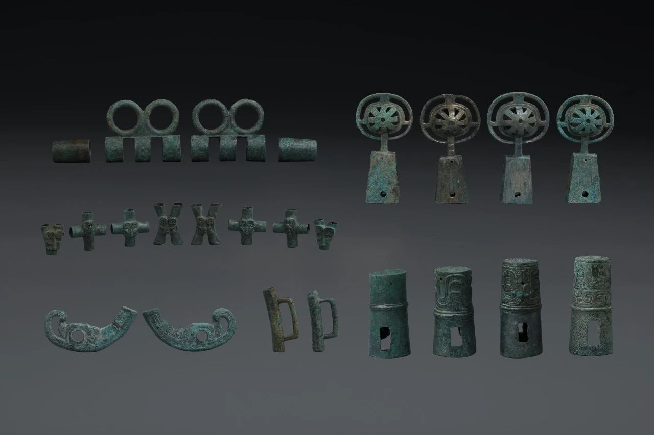 图为富平长春西周遗址出土的铜车马器组合。(图/中新社)