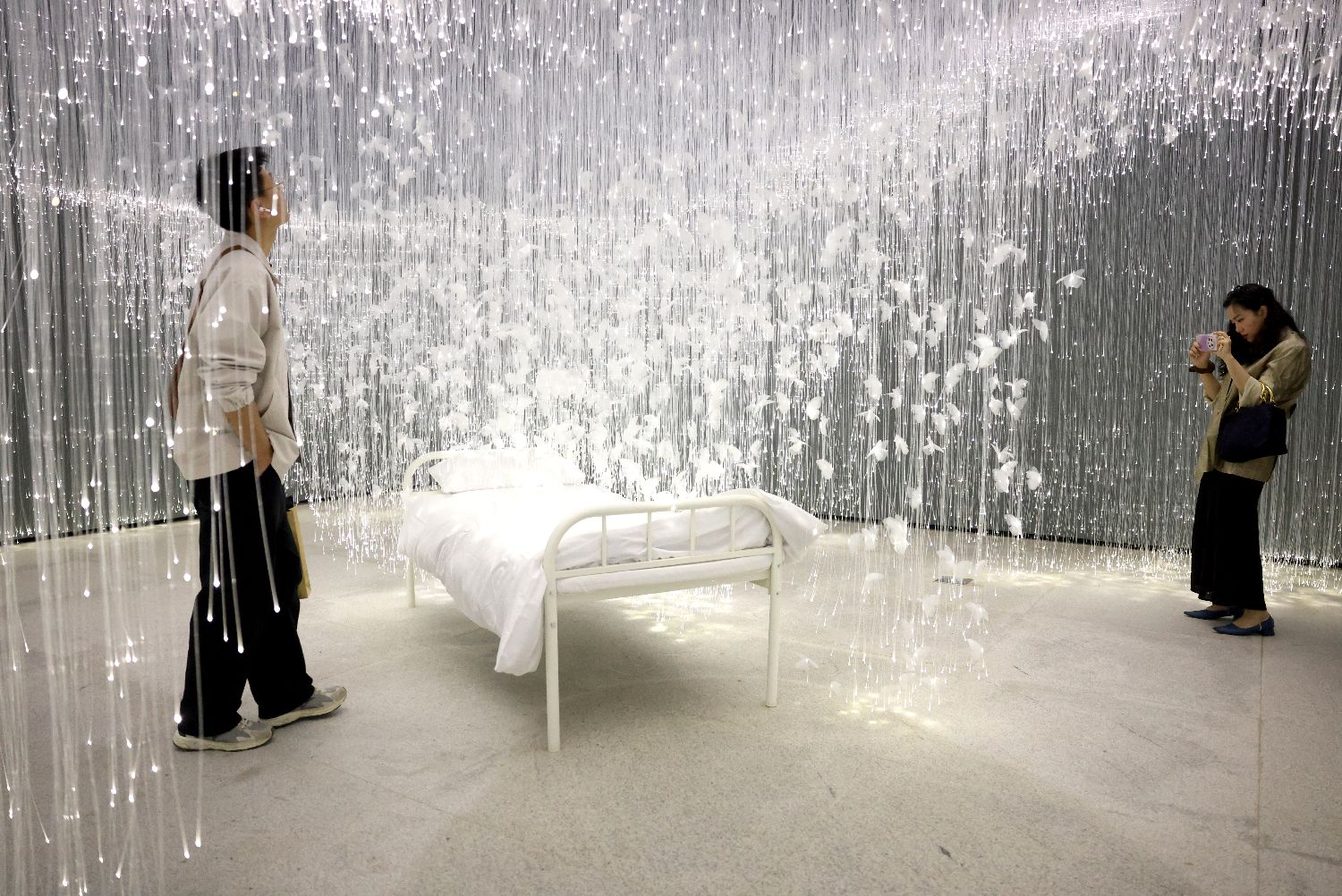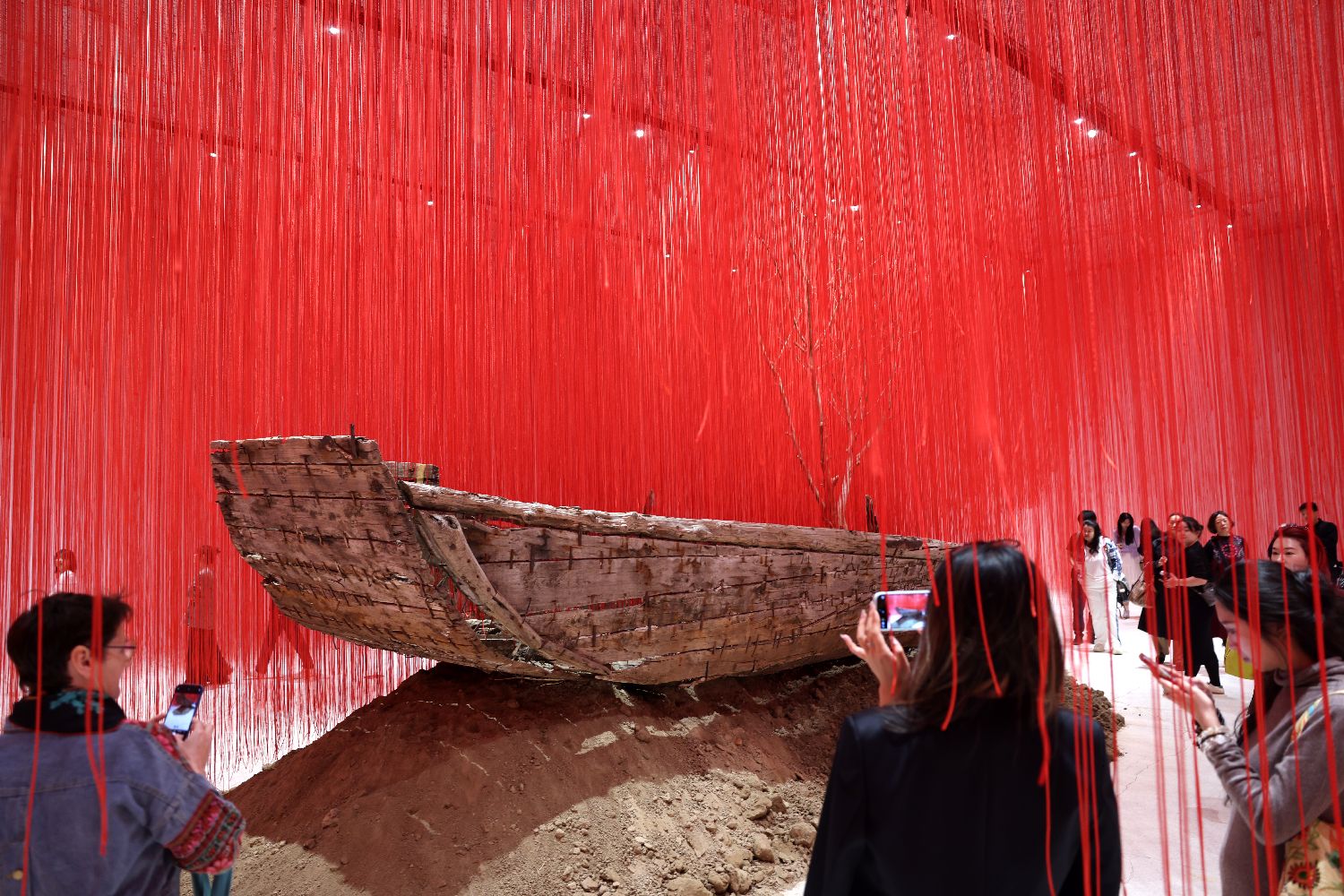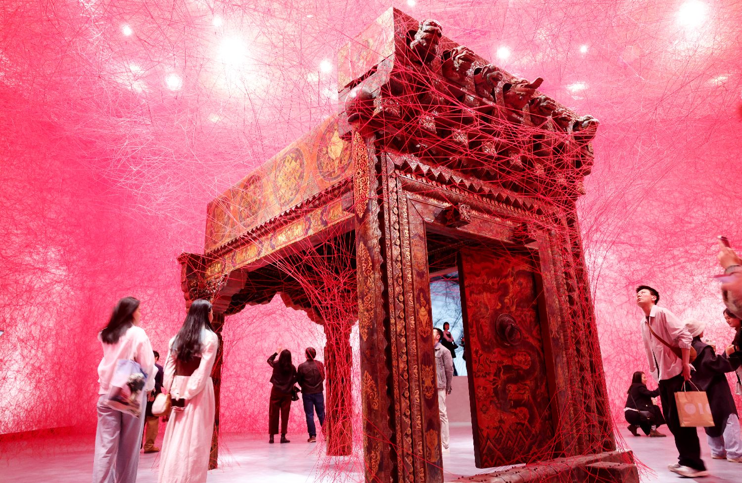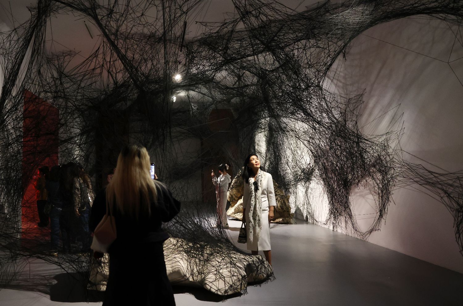 2025年3月22日,参观者走进《通往静寂之门》观赏日本艺术家盐田千春的作品。(卞亚文 摄)