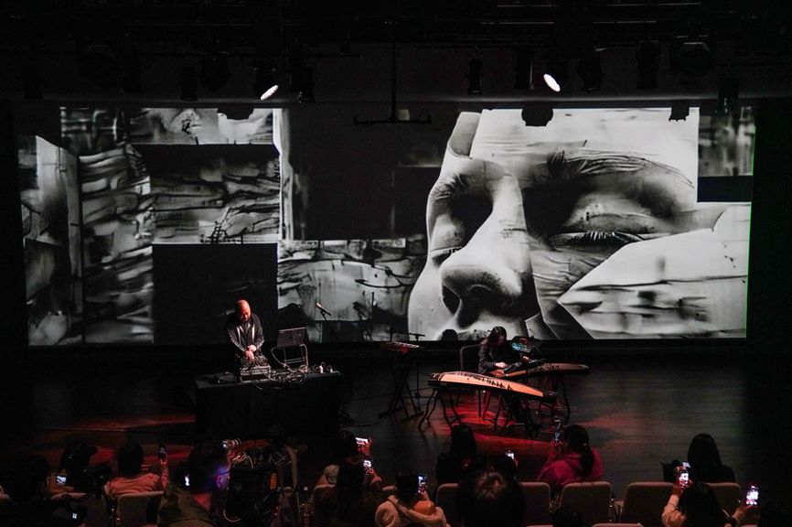 近日在第40届上海之春国际音乐节上,“未来诗·古筝与AI视听音乐会”演出现场。(图/上海上观新闻)