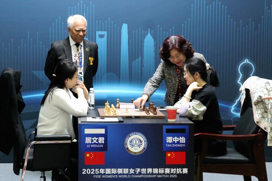 经过4月8日的休赛日,国际棋联女子世界冠军赛10日在上海棋院重燃战火。经过近5小时的激战,居文君执白取胜挑战者谭中怡,比分来到3比2,卫冕冠军首次在赛事中取得领先。