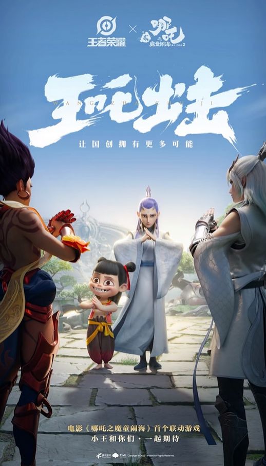中国国产手游《王者荣耀》与中国动画电影《哪吒2》首个联动游戏宣传海报。(图/上海上观新闻)
