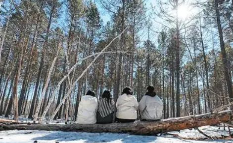 在湖北读书的大三学生小雨和朋友在黑龙江省漠河县北极村的森林里游玩。(图/北京人民网)
