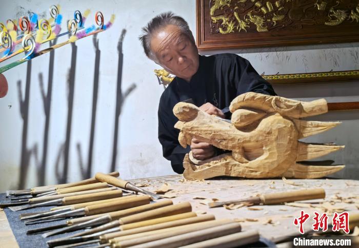 海外摄影师拍摄许桂生雕刻龙头。 张雪盈摄