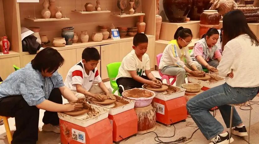 图为游客在龟兹非遗工坊体验土陶制作。(图/北京中国日报网)