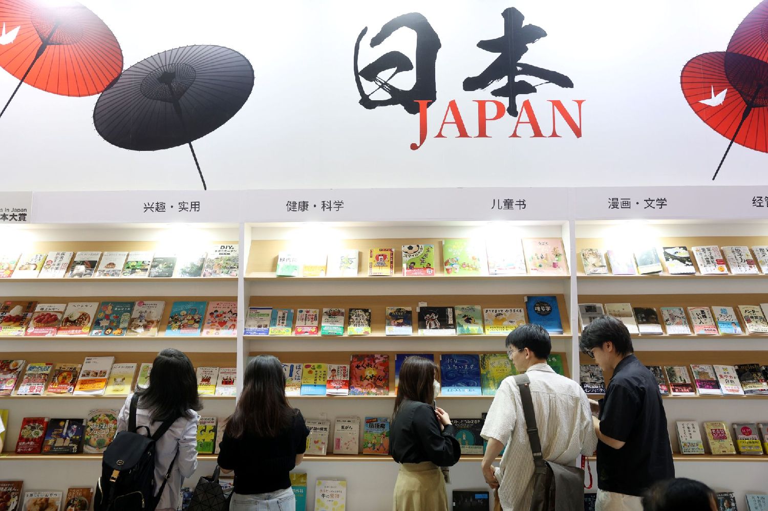2025年6月18日,日本国家展台前吸引了众多业者前来交流。当日,第三十一届北京国际图书博览会(BIBF)在中国国家会议中心开幕。(图/黎明摄)
