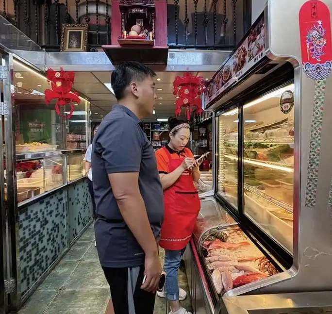 消费者正在广东美食·潮汕味道店挑选菜品。(图/北京光明网)