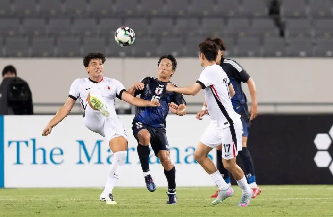 易边再战,第59分钟,中国香港队抓住角球机会,陈俊乐开球精准找到埋伏在后点的安永佳,后者头球破门扳回一球。补时读秒阶段,日本队中村草太中场长途奔袭,突入禁区后左脚破门,将比分锁定为6:1。