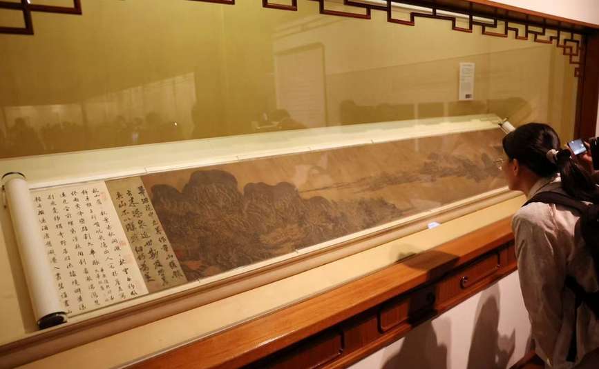观众参观《秋山萧寺图卷》。(图/上海上观新闻)