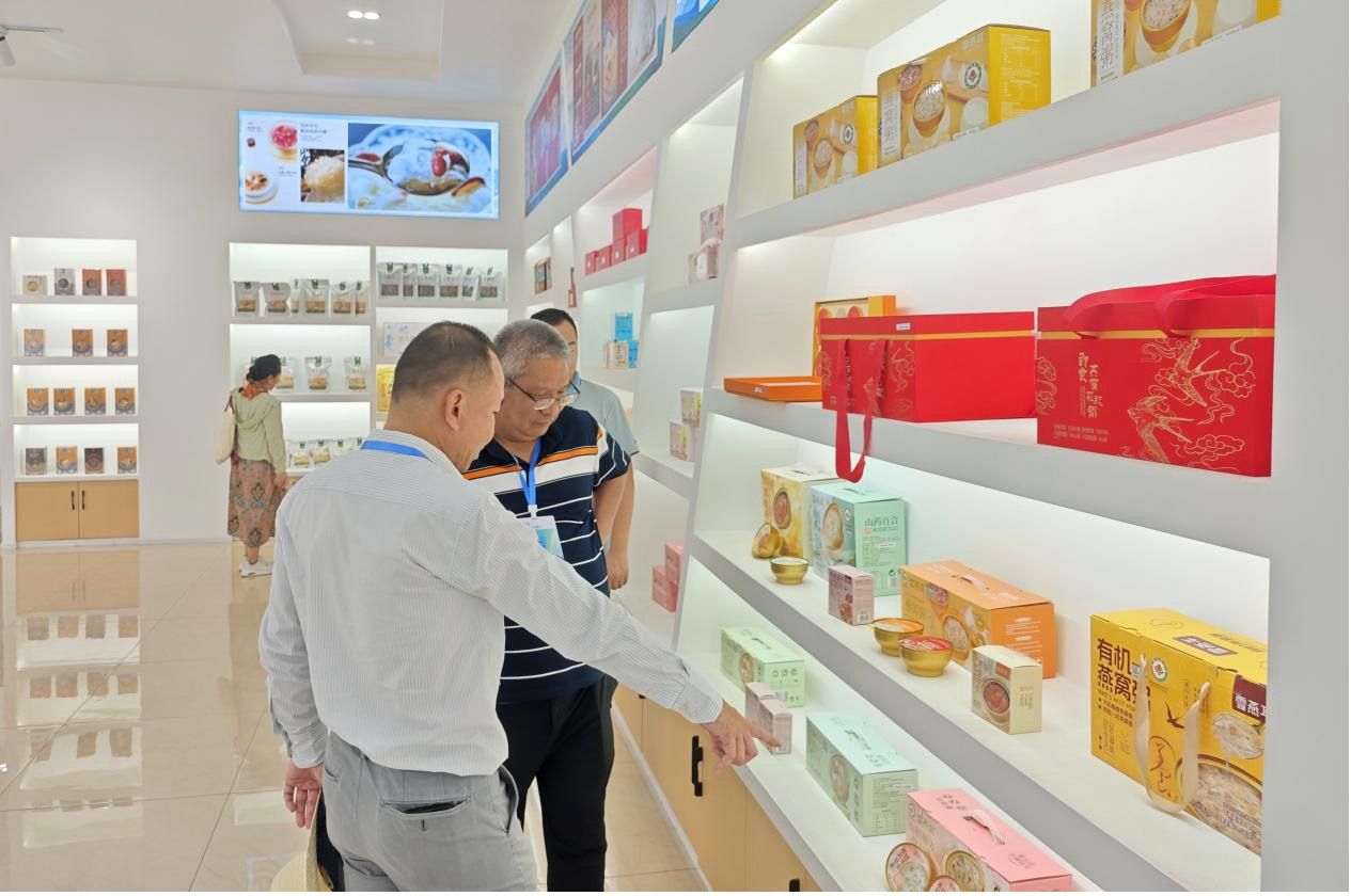 海外华文媒体代表参观了解古田县银耳精深加工产品。吕明摄
