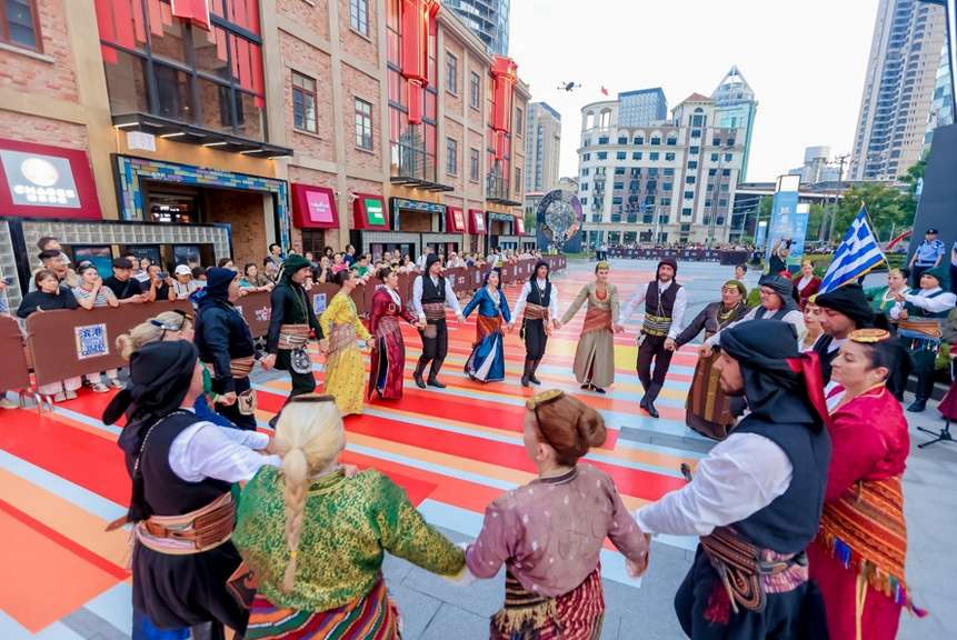紧接着,“瑞士吕斯苏格乐队”开启狂欢模式,来自阿尔卑斯山脚下的青年乐手和鼓手们,奏响激情澎湃、节奏强烈且充满欧洲流行元素的音乐,将欢乐氛围推向顶点。压轴登场的是成立于1995年的“希腊德拉马省普罗菲特艾利亚斯文化协会舞蹈团”,成员们跳起欢快优雅的民间舞蹈,将希腊传统文化艺术带至上海街头。各国方队以各具风情的表演,碰撞出多元融合的海派潮流,不少观众感慨“仿佛走遍世界也不过一条街的距离”。
