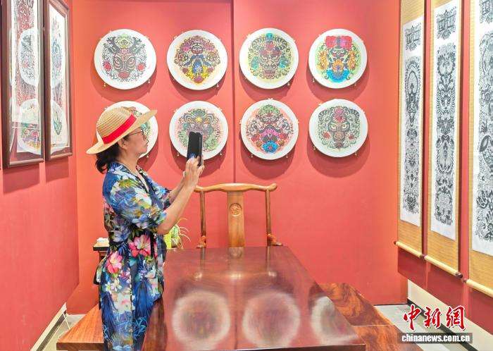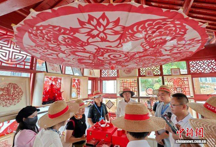 9月16日,海外华文媒体代表在福建省柘荣县靴岭尾村了解剪纸文创品。当日,“把闽东之光传播开去”——海外华文媒体宁德行活动走进福建省柘荣县。柘荣剪纸2009年作为中国剪纸组成部分,被联合国教科文组织列入“人类非物质文化遗产代表作名录”。该技艺以阳剪为主,阴剪为辅,风格鲜明,具有很强的地域个性,既保留了原始艺术淳朴、粗拙、刚健、浑厚的特征,又具有细腻、古雅、秀丽、柔美的艺术魅力。中新社记者吕明摄