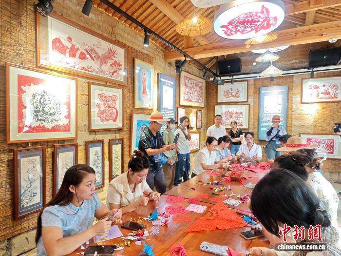 9月16日,海外华文媒体代表与游客一起在福建省柘荣县靴岭尾村体验剪纸工艺。当日,“把闽东之光传播开去”——海外华文媒体宁德行活动走进福建省柘荣县。柘荣剪纸2009年作为中国剪纸组成部分,被联合国教科文组织列入“人类非物质文化遗产代表作名录”。该技艺以阳剪为主,阴剪为辅,风格鲜明,具有很强的地域个性,既保留了原始艺术淳朴、粗拙、刚健、浑厚的特征,又具有细腻、古雅、秀丽、柔美的艺术魅力。中新社记者吕明摄
