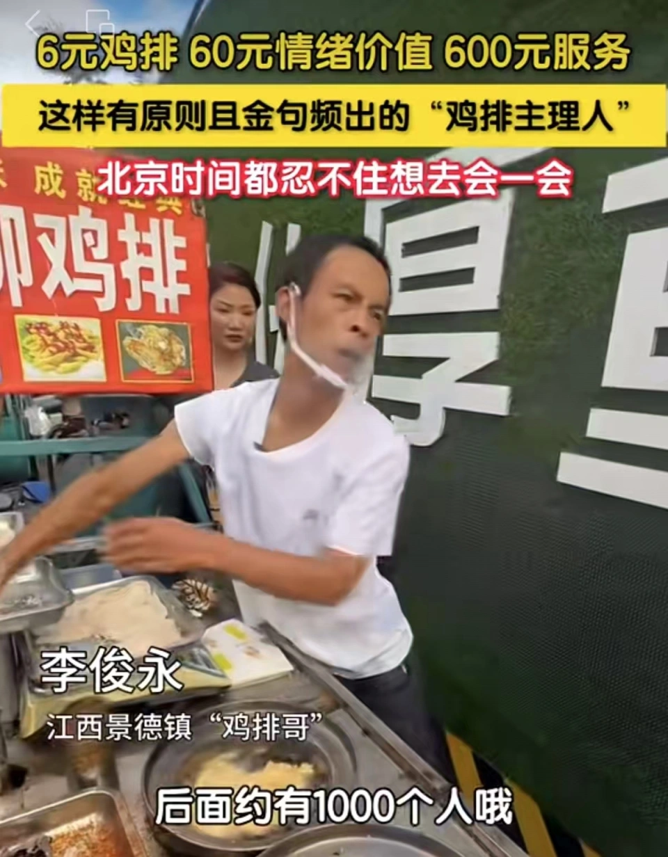 “鸡排哥”的走红,恰恰道出了当下消费市场的深层需求:在快节奏的生活里,人们需要这样的“情绪补给站”,人们想要的不只是商品,更是“排队时听摊主说句玩笑,能消解等待的烦躁”。