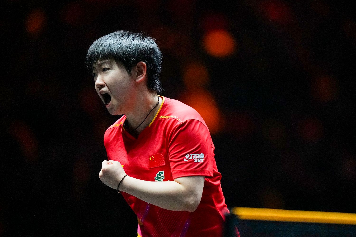 图为孙颖莎在比赛中庆祝得分。(图/中新社)