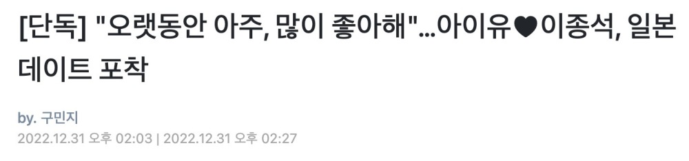 12月31日,韩媒D社曝出顶流恋爱瓜,李钟硕和IU在日本甜蜜约会被拍。