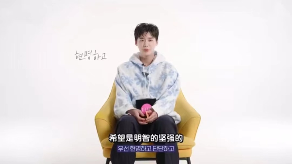 李钟硕这样说:当时有人给予我积极正向的思考,我想借机和那位说话,谢谢你总是让我这么帅气,我想说我喜欢你很久了,也非常尊敬你,让我知道这段时间,努力地成为更好的人。