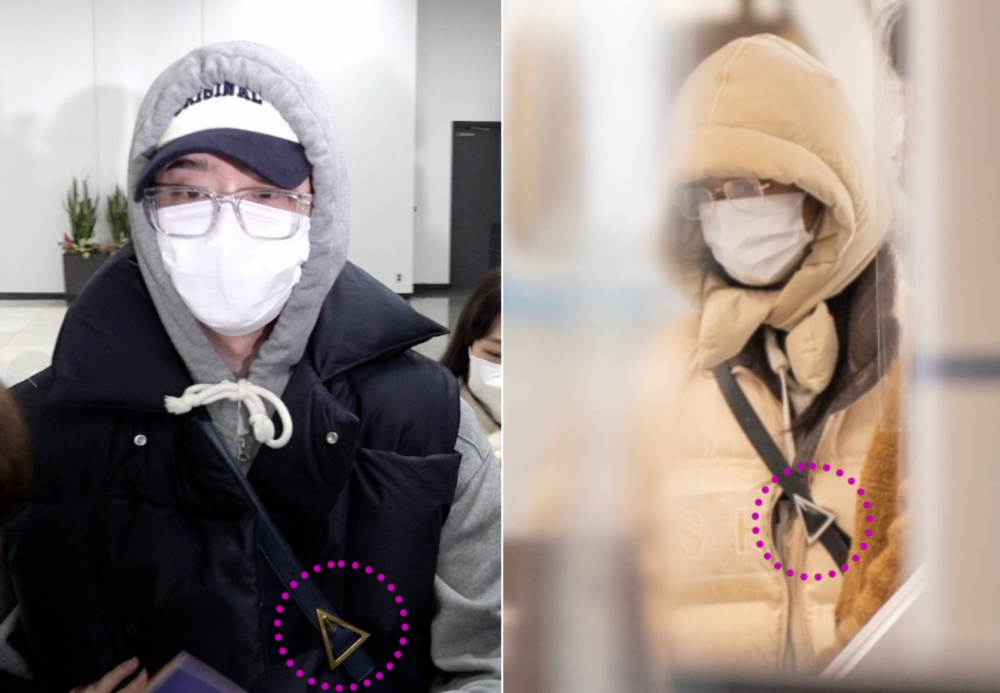根据曝光的机场照来看,二人戴着同样的眼镜和背着同样的包,情侣装扮无疑了。