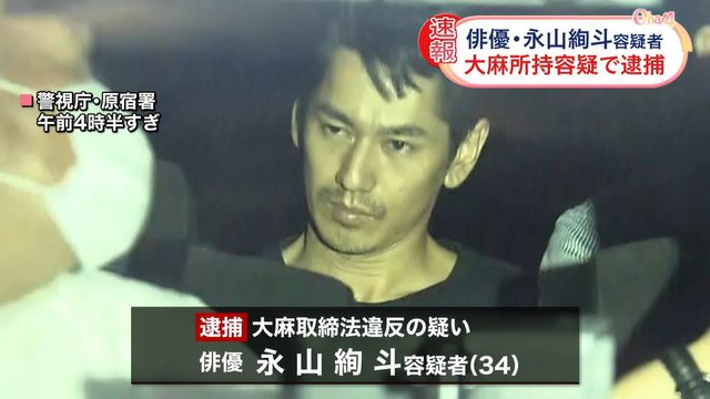 日本知名艺人永山绚斗因非法携带大麻被警方逮捕