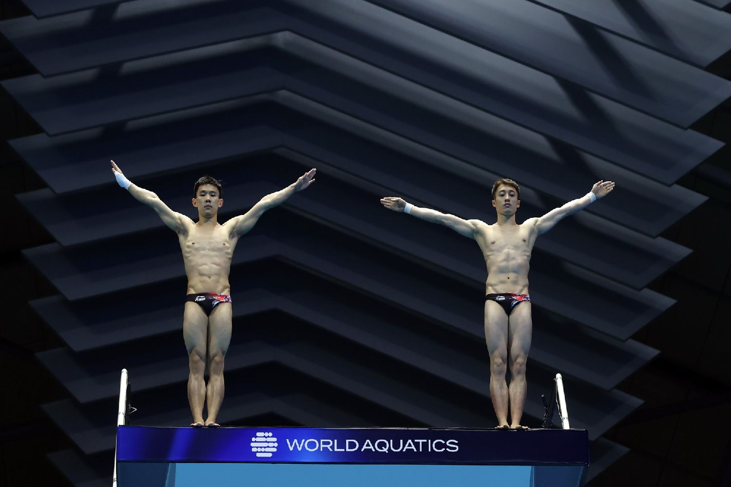 7月17日,在福冈游泳世锦赛跳水男子双人10米台决赛中,中国组合杨昊/练俊杰夺冠。(图/中新社)