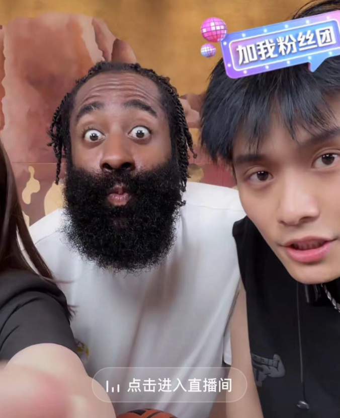 直播过程中,哈登与直播间的粉丝们亲切互动,并用中文跟粉丝们打招呼。