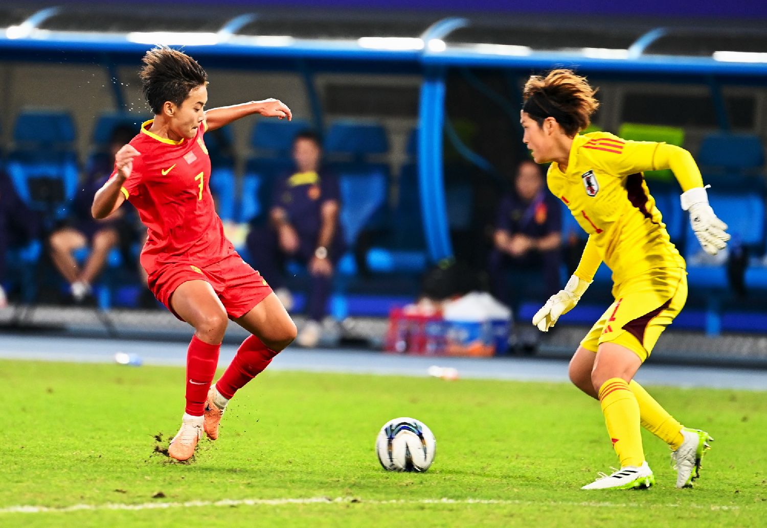 中新社报道,比赛上半场,中国女足以1:4落后日本队三球,现场球迷们热情依旧,高喊“中国队加油”为其助威。下半场,中国女足全力拼搏,利用角球机会连进两球,一度看到了追平和逆转的曙光,但最终依旧以3:4惜败日本女足。