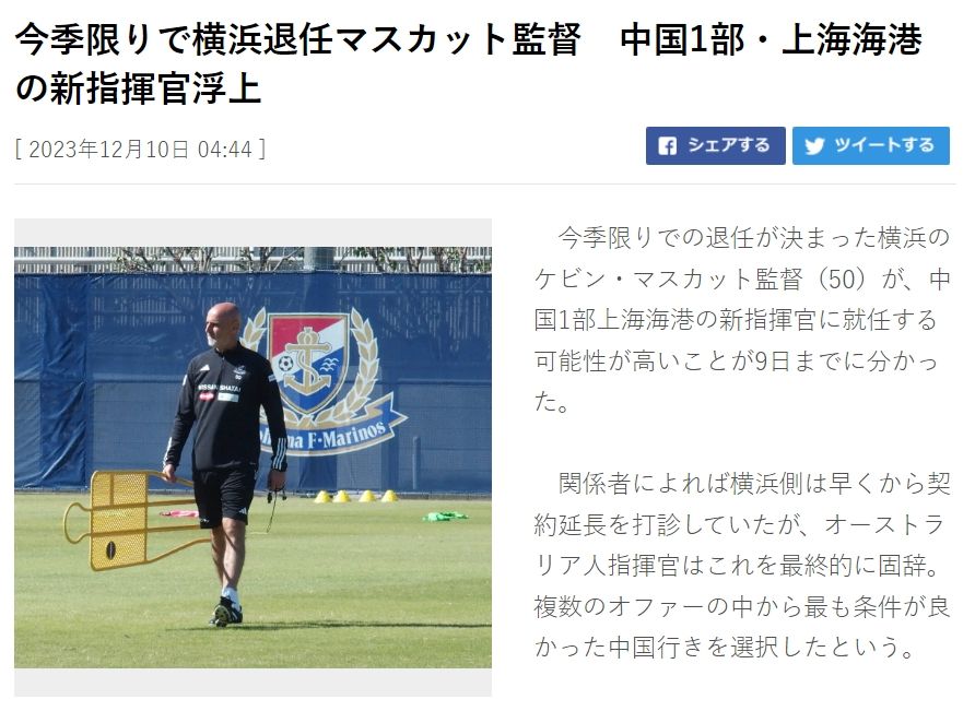 据报道,穆斯卡特和横滨水手的合同将在2024年1月31日到期,俱乐部早前就和他接触续约事宜,但最终被这位澳大利亚教练拒绝。在众多邀约中,他最终选择前往中国,因为中超俱乐部开出的条件更为丰厚。