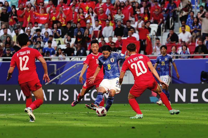 上半场日本队3比2领先越南的比分,也让关注本场比赛的球迷和媒体人大呼过瘾。有人表示,这是本届亚洲杯到目前为止“最精彩的一个上半场”。有媒体记者称:“日本队进攻行云流水,南野拓实禁区前斜传直插和中村敬斗的美妙弧线,都堪称完美配合。”“值得中国足球学习的榜样真是越来越多!”而越南队能够打进日本队两球,确实也令人刮目相看。