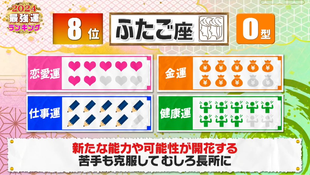 你的新年运势怎么样?日本公布2024年最强【星座&血型】运势排行!